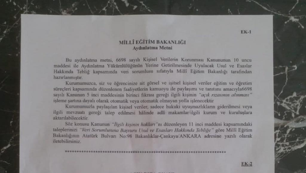 AÇIK RIZA ONAYI BELGESİ KİŞİSEL BİLGİLERİN KORUNMASI İÇİN DÜZENLENMİŞTİR. TÜM VELİLERİMİZE İMZALATILMIŞTIR.